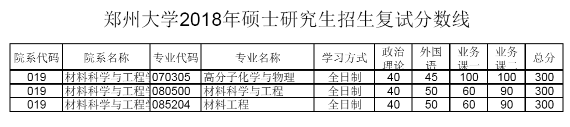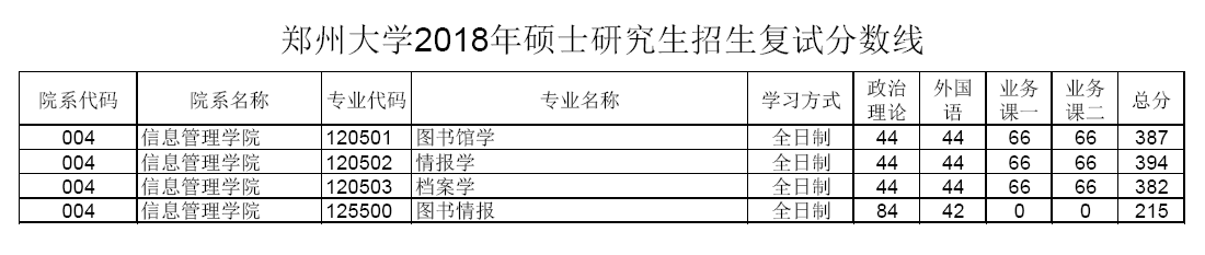 郑州大学郑大2018年硕士研究生招生考研复试分数线